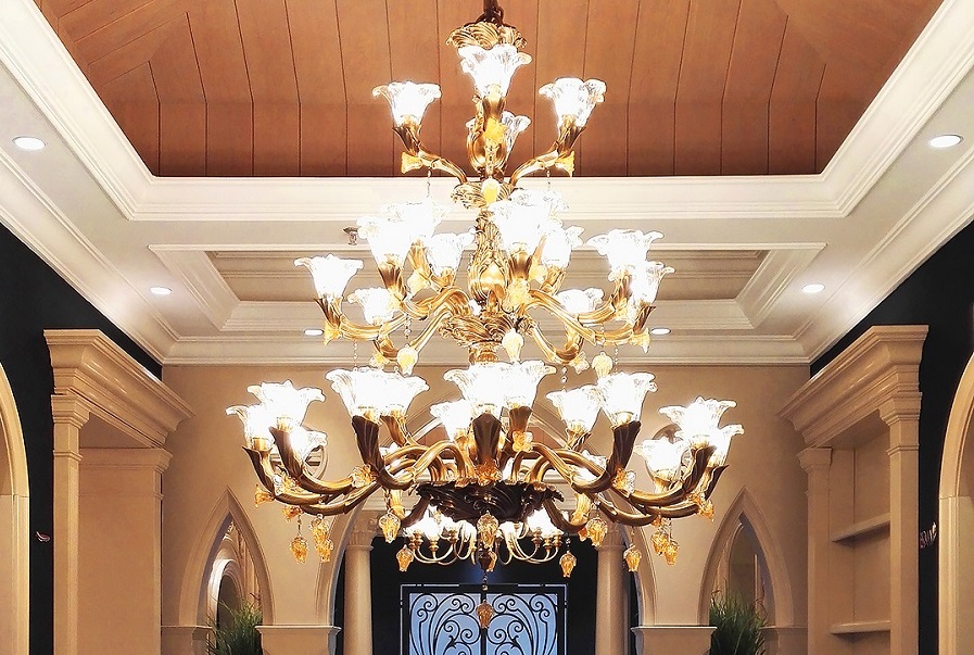 美式復古全銅吊燈,別具一格的美學詮釋。莊重大氣的復古造型,精巧且具有文化特色的紋路與雕花工藝,沉穩古典的銅原色,不過分強調繁復,卻又無處不體現出高貴與典雅,這就是諾克照明的高端復古美式風。各類藝術擺件的簡單搭配,簡約中透露出深沉感和濃郁的藝術氣息。再搭配諾克S404994款美式復古吊燈,柔和的燈光渲染,別樣的靜謐時光。
