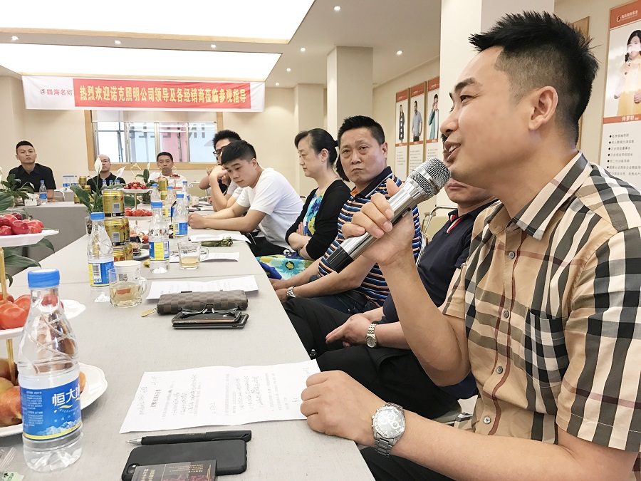 在邵陽四海名燈新店開業(yè)之際,2018年5月18日,諾克照明湖南省經(jīng)銷商第五次會(huì)議在湖南省邵陽市勝利召開。來自湖南省及江西廣西部分經(jīng)銷商們共三十余人參加了會(huì)議。諾克照明CEO封總、營(yíng)銷總監(jiān)陳總等也參加了本次會(huì)議。公司領(lǐng)導(dǎo)與經(jīng)銷商們總結(jié)了去年的收獲,并提出了今年的計(jì)劃,暢所欲言,共同探討。