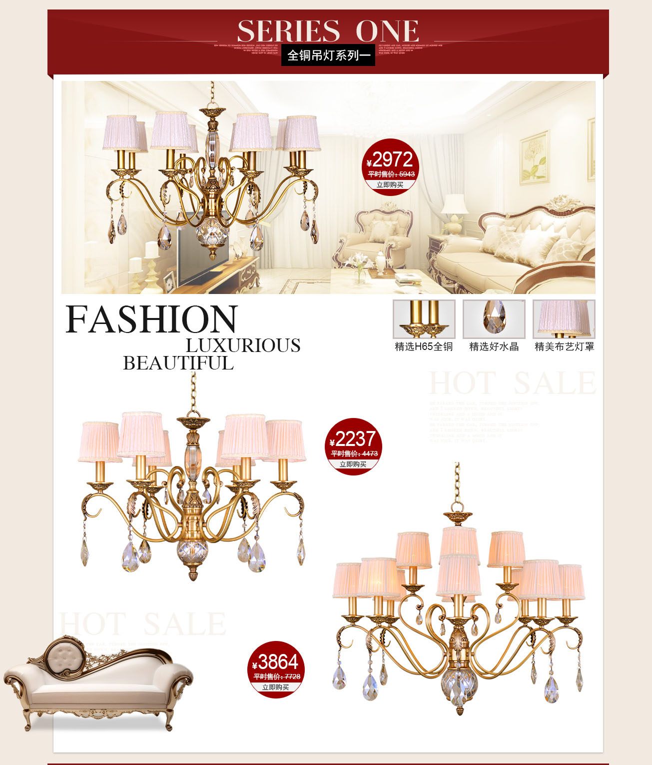 ▲諾克美式簡(jiǎn)約全銅吊燈